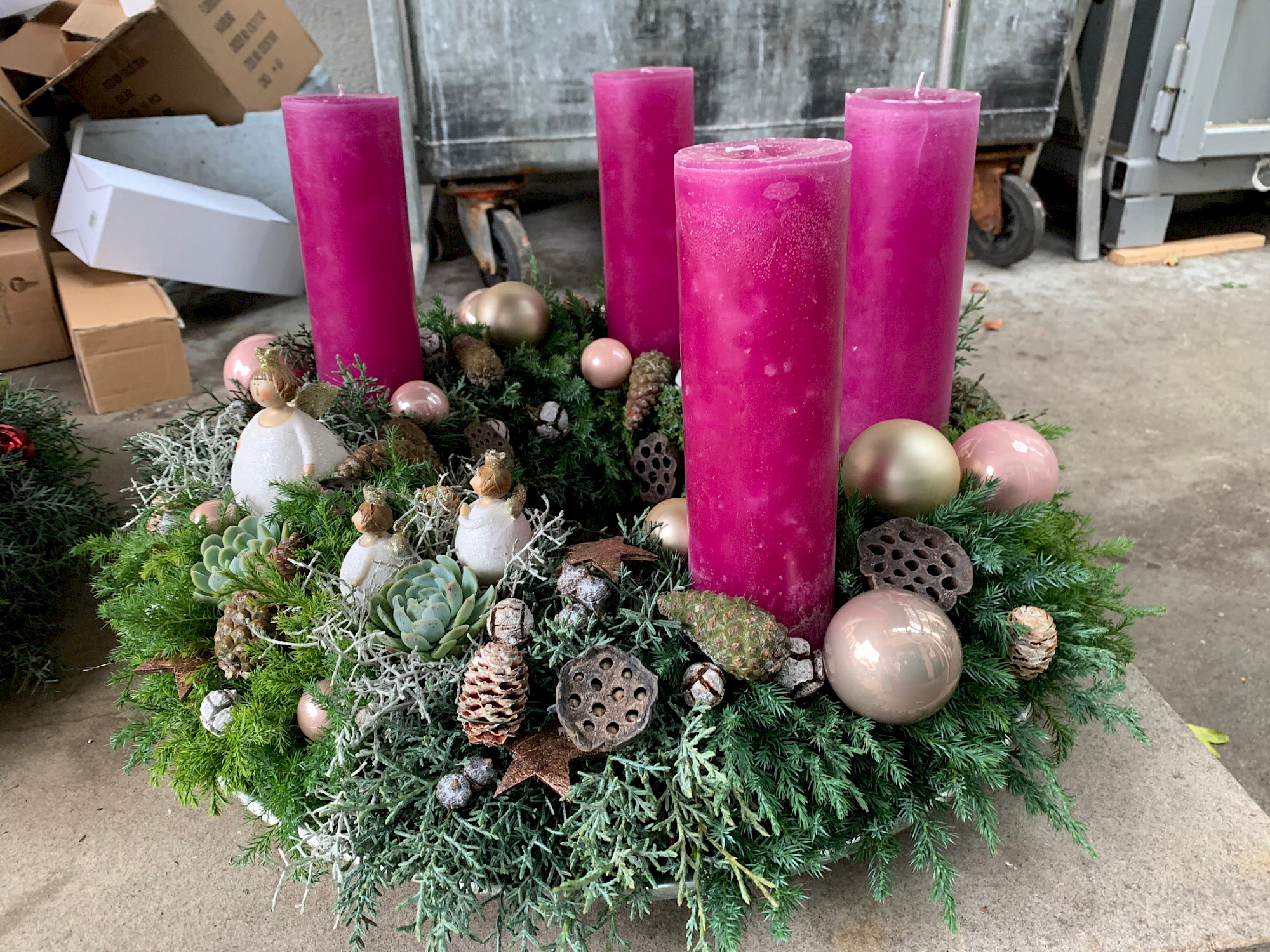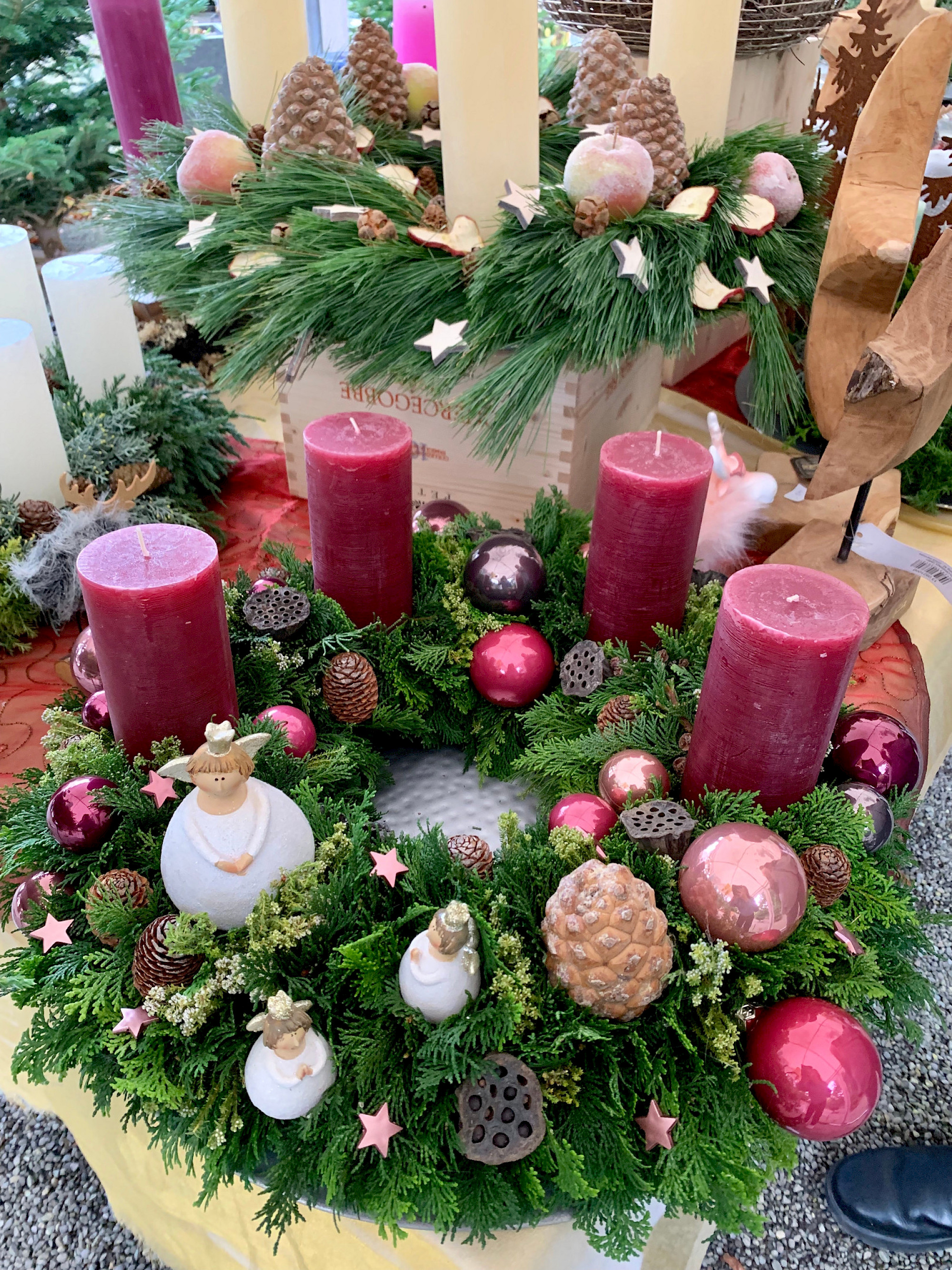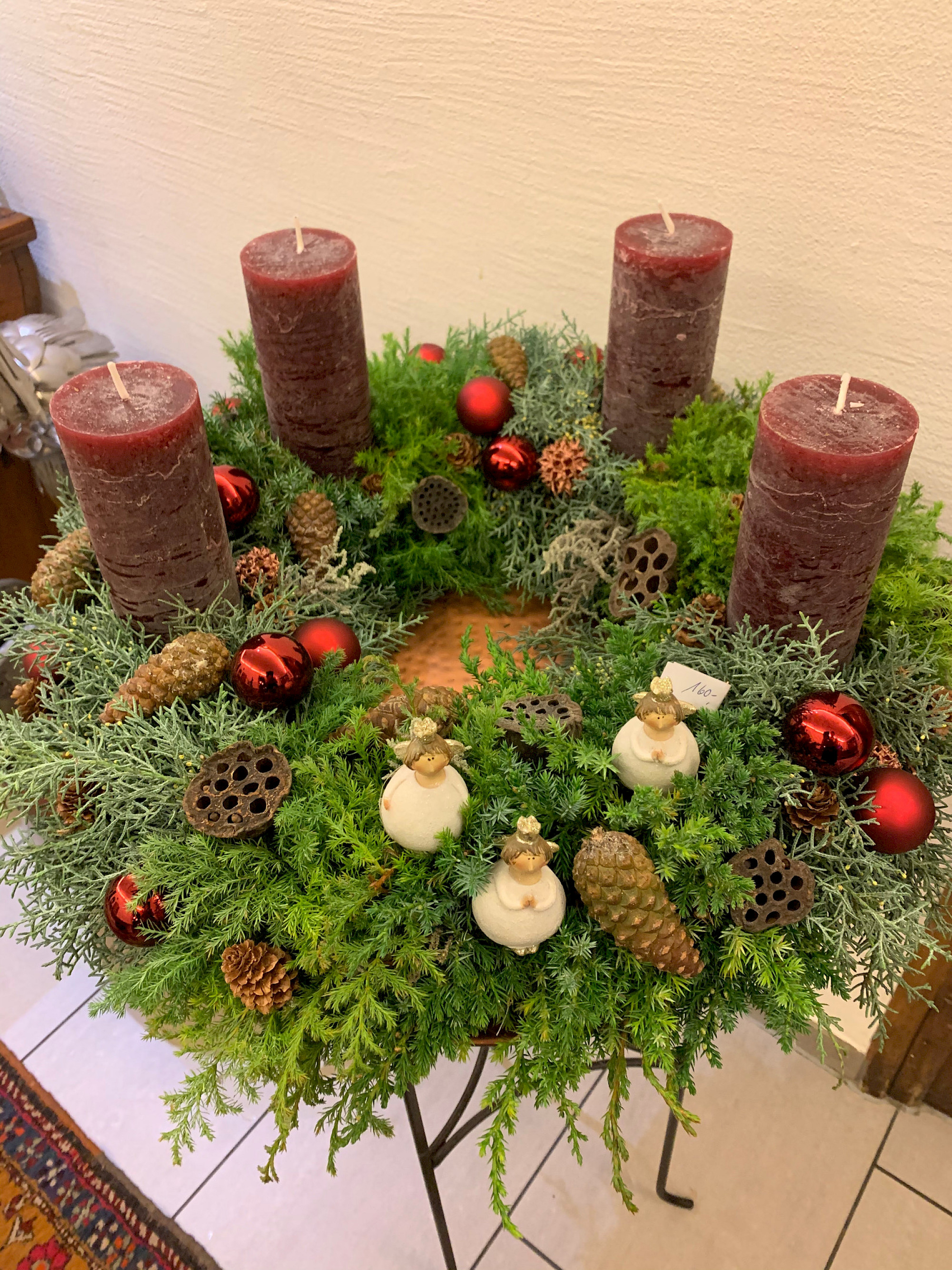 Gerne stecken wir Ihnen Ihren Adventskranz - Sie bestimmen - Grösse - Farbe der Kerzen - Dekoration (Engel, Kugeln, Zapfen, Elche)