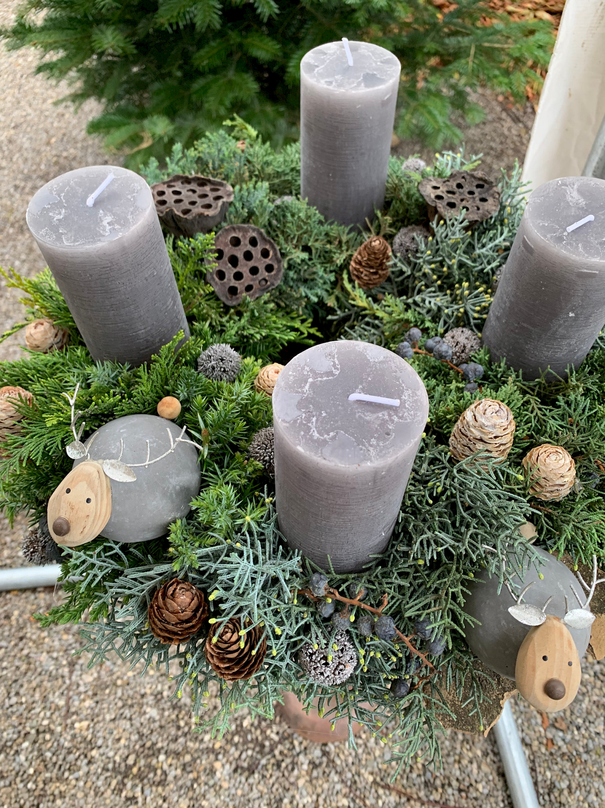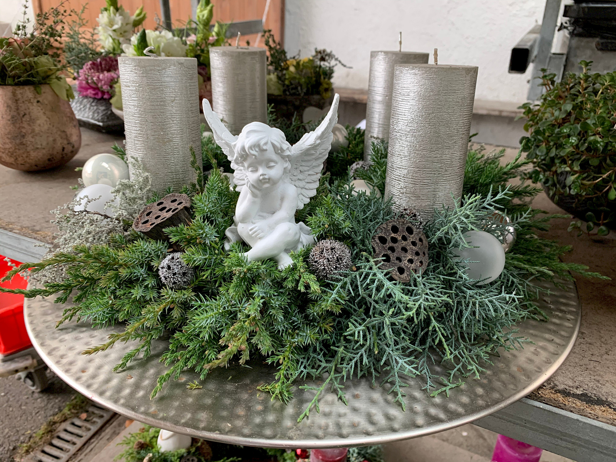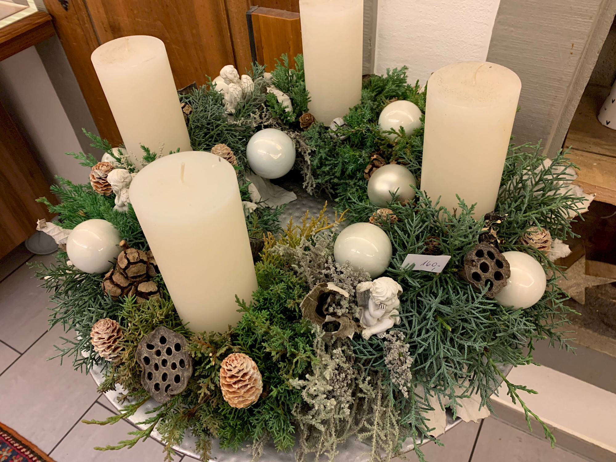 Gerne stecken wir Ihnen Ihren Adventskranz - Sie bestimmen - Grösse - Farbe der Kerzen - Dekoration (Engel, Kugeln, Zapfen, Elche)